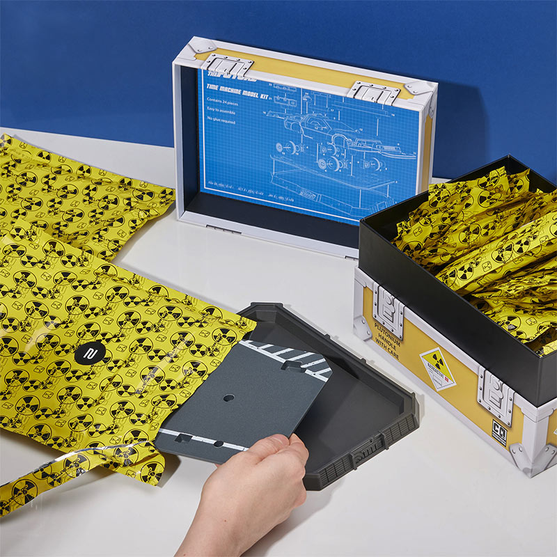 Once complete, you’ll have a detailed, high-quality replica complete with lightning-charged cables, plutonium case, and the Twin Pines Mall sign backdrop.
